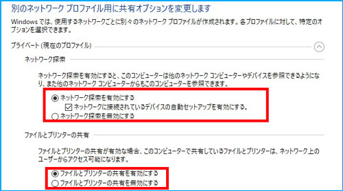 「ネットワーク探索を有効にする」